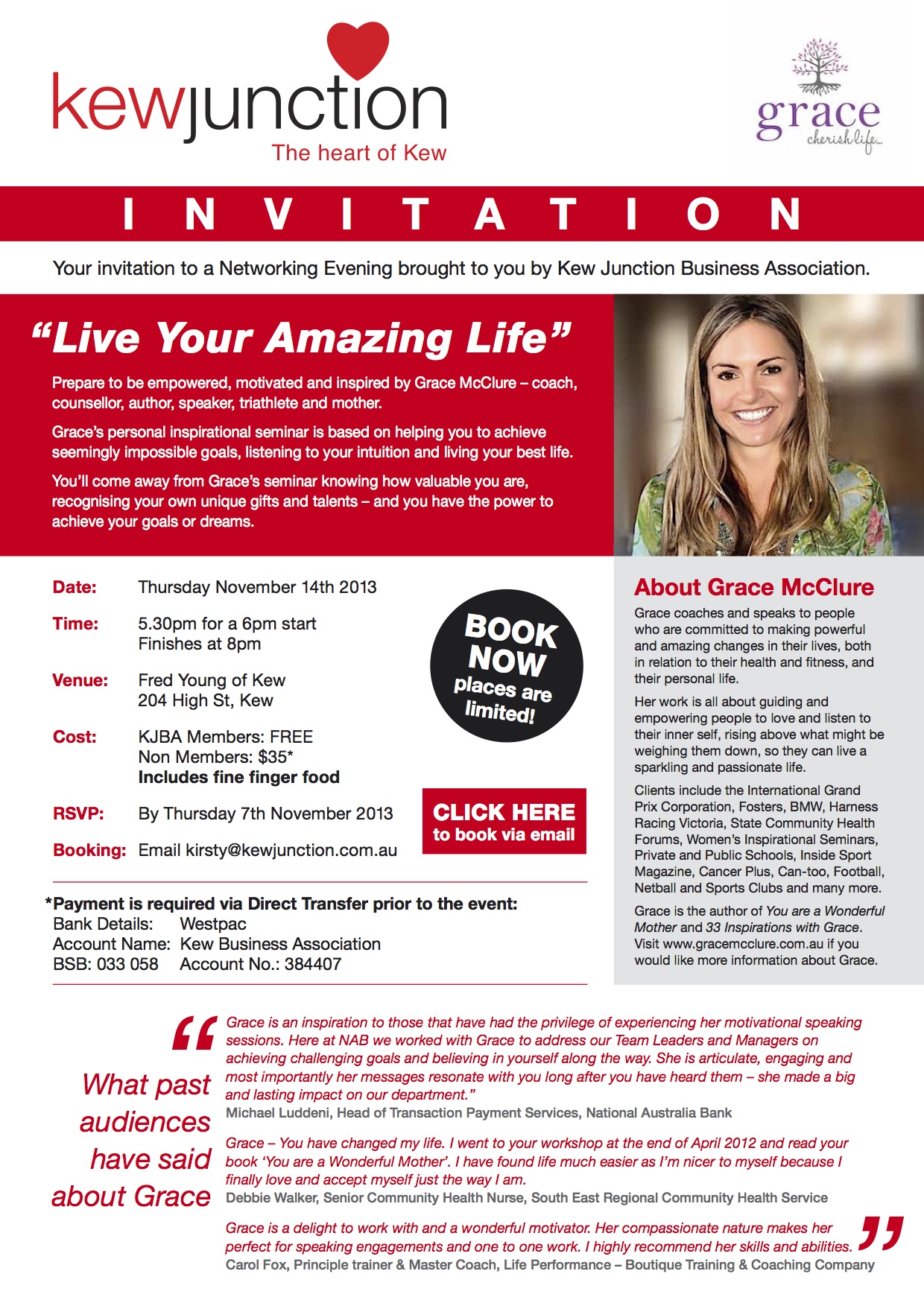 - Thursday November 14th I am speaking at Kew Junction Retailers Group. I love Kew and am a regular in that suburb and to the shops so I’m really looking forward to this one.
